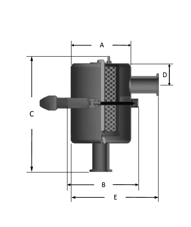 ANGLE FLEX TRAP, KF25 FLG, 1.0" PORT, 4" BODY, WITH HEATER FOR USE WITH MOLECULAR SIEVE ONLY.